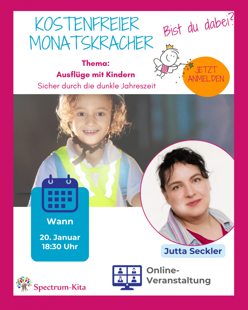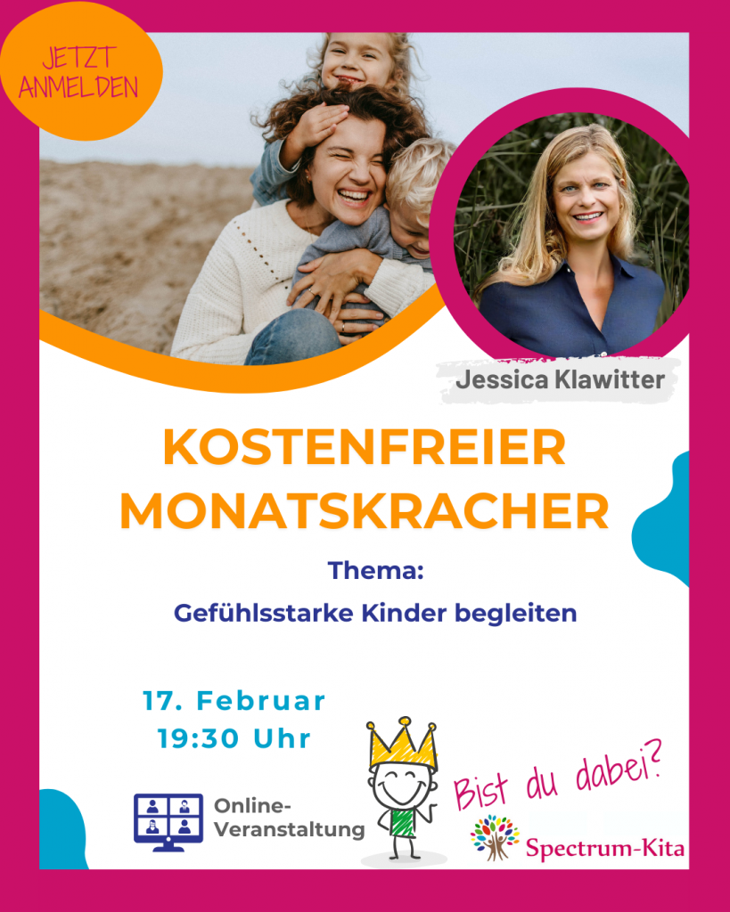 Melde dich an zu unserer kostenlosen Fortbildungsveranstaltung für pädagogische Fachkräfte, Kindertagespflegepersonen und alle, die sich rund um Kinderbetreuung, Kita und Hort fortbilden wollen.